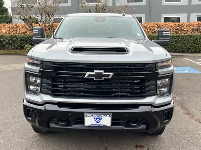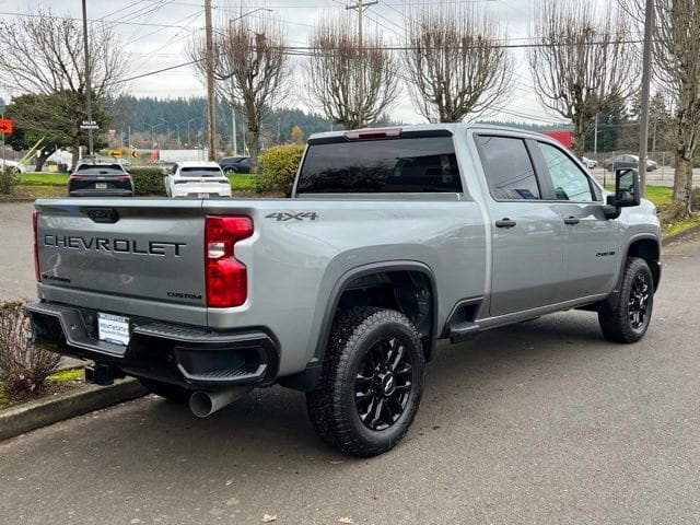 Sterling Gray Metallic 2026 Chevrolet Silverado 2500HD Custom 4WD 10-Speed Automatic Duramax 6.6L V8 Turbodiesel 10-Speed Automatic, 4WD, Black Cloth, 10-Way Power Driver Seat Adjuster with Lumbar, 120-Volt Bed Mounted Power Outlet, 120-Volt Interior Power Outlet, 170 Amp Alternator, 2-Speed Electronic Shift Transfer Case, 3.5 Diagonal Monochromatic Display DIC, 3.73 Rear Axle Ratio, Auto-Dimming Inside Rear-View Mirror, Black Mirror Caps, Bluetooth® For Phone, Chevrolet Connected Access Capable, Color-Keyed Carpeting Floor Covering, Compass, Custom Blackout Package, Custom Convenience Package, Custom Value Package, CX Safety Package, Deep-Tinted Glass, Dual Rear USB Ports (charge Only), Durabed Pickup Bed, Electric Rear-Window Defogger, Electronic Cruise Control with Set and Resume Speed, EZ Lift Power Lock and Release Tailgate, Front Rubberized Vinyl Floor Mats, HD Rear Vision Camera, Heated and Auto-Dimming Vertical Trailering Mirrors, Heated Vertical Trailering Mirrors, Hill Descent Control, Lane Change Alert with Side Blind Zone Alert, LED Cargo Area Lighting, Locking Tailgate, Manual Tailgate Function with No EZ Lift, Manual Tilt-Wheel Steering Column, Off-Road Suspension, OnStar Services Capable, Power Door Locks, Power Front Windows with Driver Express Up/Down, Power Front Windows with Passenger Express Down, Power Rear Windows with Express Down, Preferred Equipment Group 1CX, Push Button Start, Rear 60/40 Folding Bench Seat (folds Up), Rear Cross Traffic Alert, Rear Rubberized Vinyl Floor Mats, Remote Keyless Entry, Remote Vehicle Starter System, SiriusXM with 360L Trial Subscription, Standard Tailgate, Suspension Package, Ultrasonic Front and Rear Park Assist, Unauthorized Entry Theft-Deterrent System, Wheels: 20 10-Spoke Machined Aluminum, Wheels: 20 High Gloss Black Painted, Wi-Fi Hotspot Capable, Wireless Phone Projection, Z71 Off-Road Package.